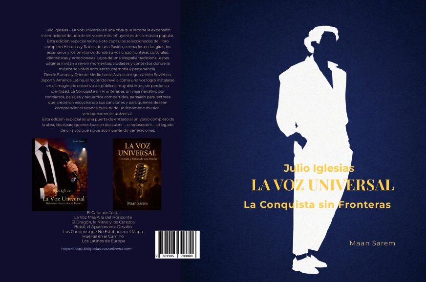 Julio Iglesias – La Voz Universal es una obra que recorre la expansión internacional de una de las voces más influyentes de la música popular. Esta edición especial reúne siete capítulos seleccionados del libro completo Historias y Raíces de una Pasión, centrados en las giras, los escenarios y los territorios donde su voz cruzó fronteras culturales, idiomáticas y emocionales. Lejos de una biografía tradicional, estas páginas invitan a revivir momentos, ciudades y contextos donde la música se volvió encuentro, memoria y pertenencia. Desde Europa y Oriente Medio hasta Asia, la antigua Unión Soviética, Japón y América Latina, el recorrido revela cómo una voz logró instalarse en el imaginario colectivo de públicos muy distintos, sin perder su identidad.